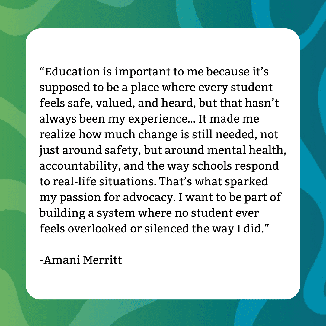 Amani Merritt is an 11th grade student at Cass Technical High School. She is involved in Doctors of Tomorrow, book club, Wolverine Pathways, Women of Tomorrow, and serves as a Project Genesis summer intern. She is also a dedicated community babysitter and a proud member of AKA Teens. Amani is passionate about health advocacy and helping people. She joined the Skillman Youth Council to act as a voice for youth in the Detroit community and to help create positive change. In her free time, she enjoys sewing, reading romance and dystopian novels, and journaling.